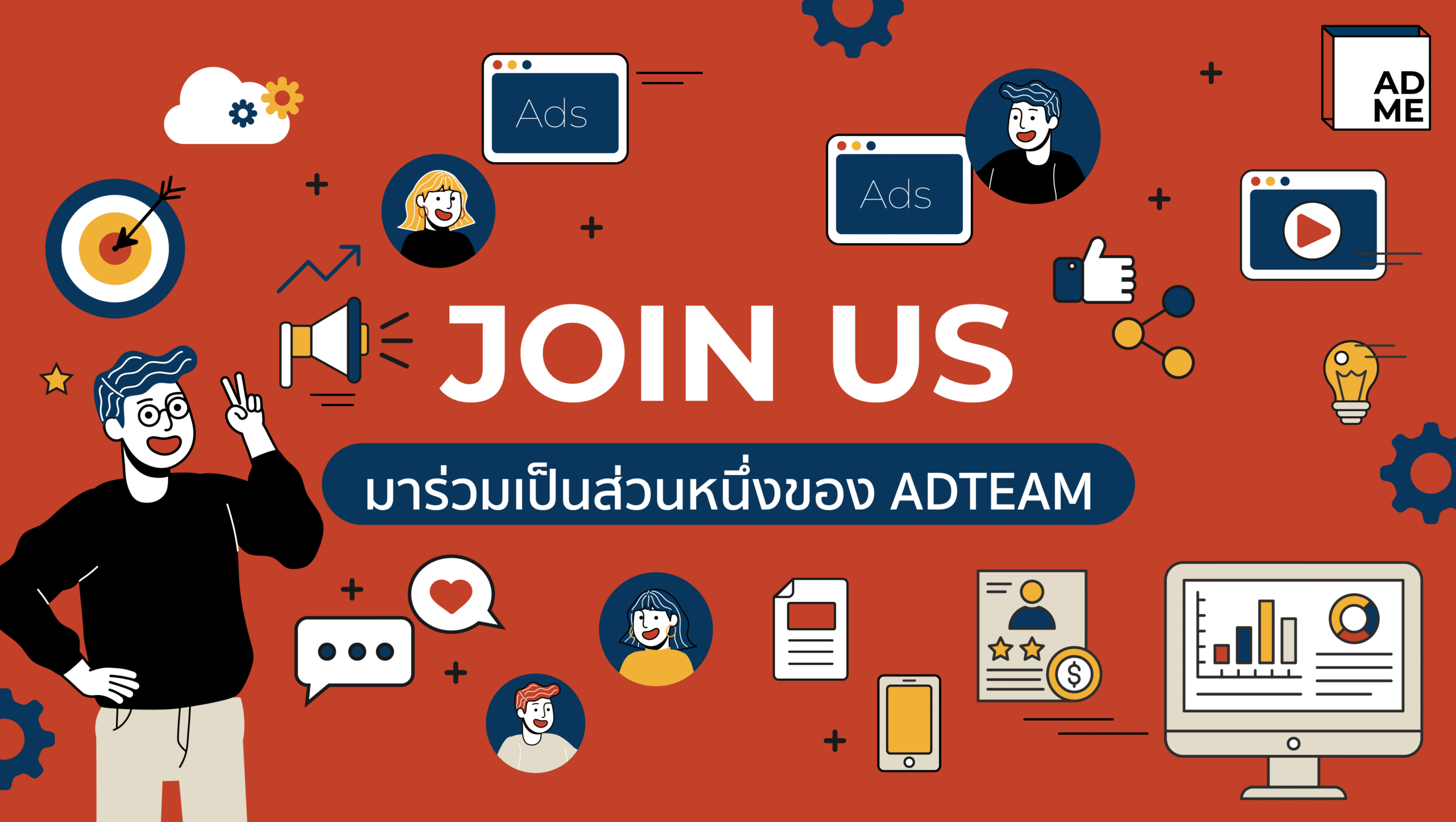 ร่วมเป็นส่วนหนึ่งของเราวันนี้ และเติบโตไปด้วยกันกับ ADTEAM by ADME MEDIA