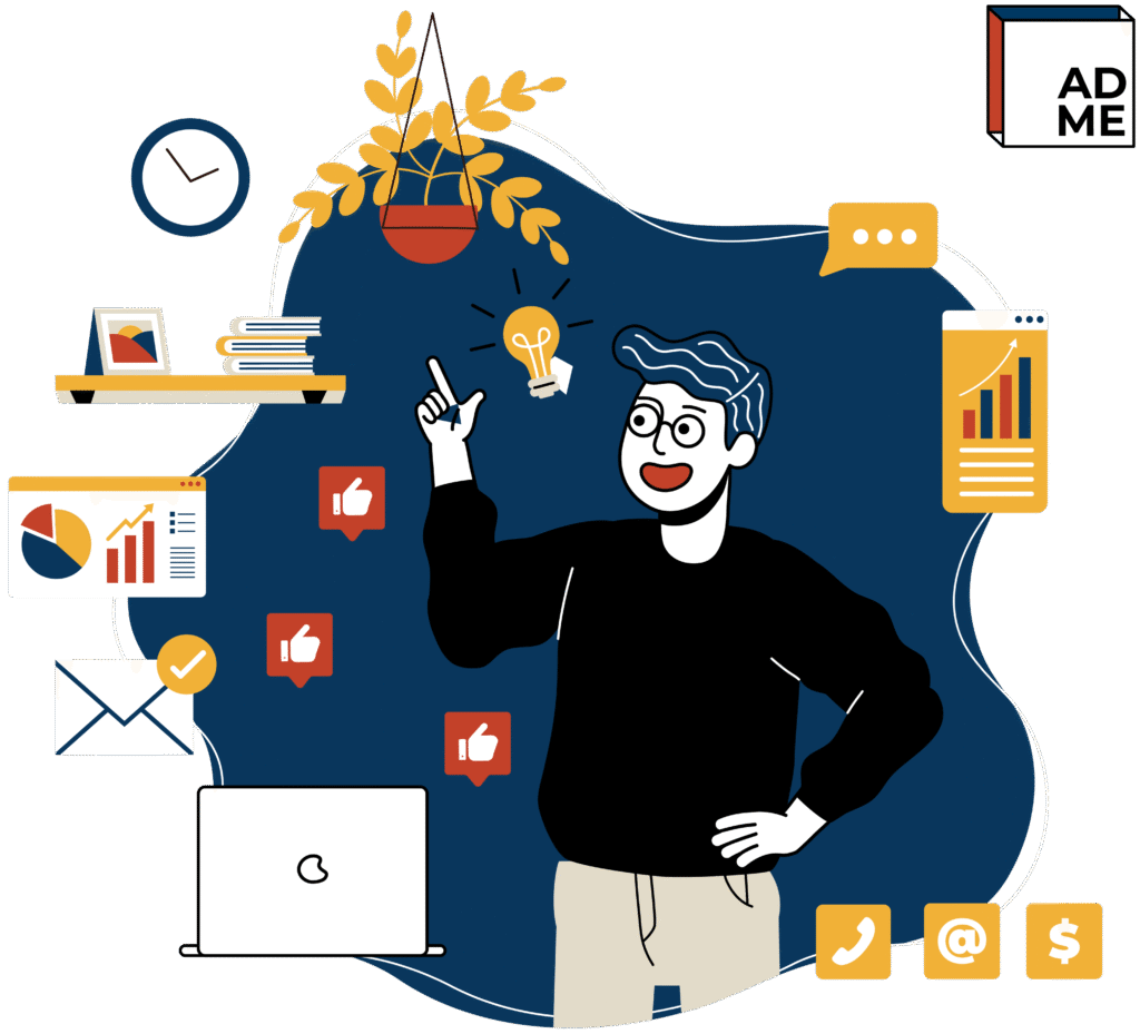 ADME (แอดมี มีเดีย) บริษัทที่ปรึกษาด้านการตลาดออนไลน์ครบวงจรที่มุ่งเน้นการขับเคลื่อนธุรกิจในยุคดิจิตอลด้วยกลยุทธ์การตลาดที่ทันสมัยและมีคุณภาพ ทีมงานของเราประกอบด้วยผู้เชี่ยวชาญที่มีประสบการณ์ในการจัดการและดำเนินกลยุทธ์การตลาดออนไลน์ที่หลากหลาย เพื่อช่วยธุรกิจให้เติบโตและโดดเด่นเหนือคู่แข่ง