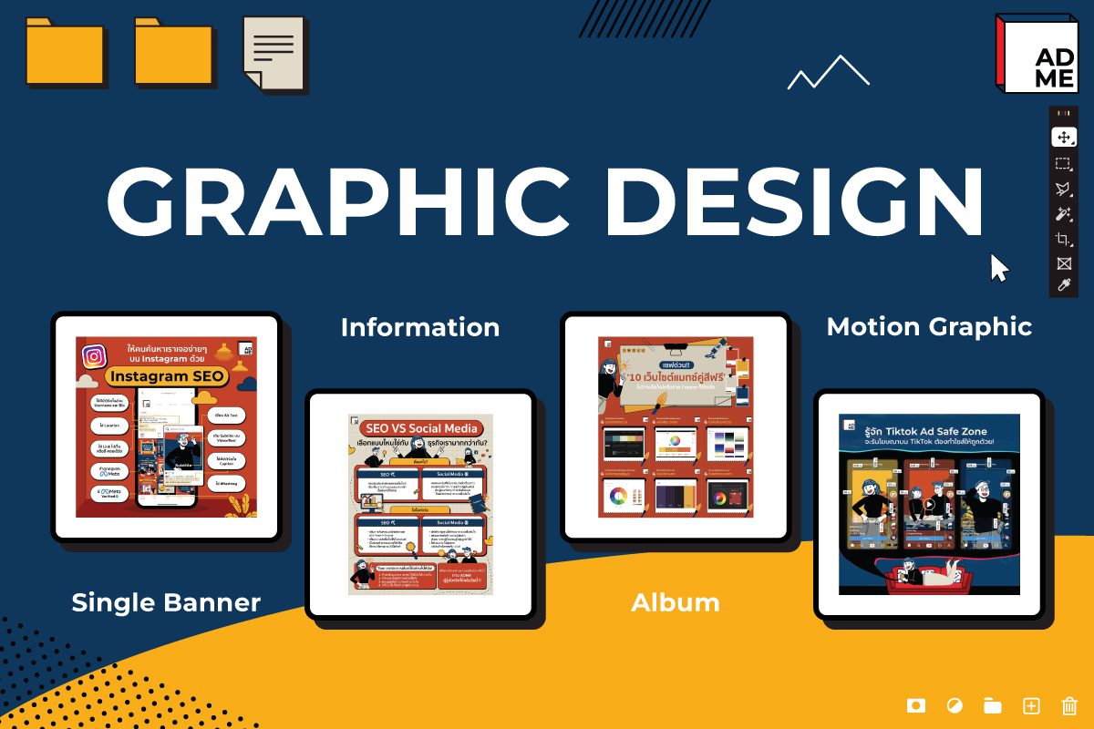 ของธุรกิจ ADME Media ให้บริการรับออกแบบกราฟฟิกดีไซน์แบบครบวงจร ตั้งแต่คิดคอนเซปต์ วางโครงสร้าง ไปจนถึงต่อยอดใช้งานจริงบนทุกแพลตฟอร์มอย่างมีประสิทธิภาพ